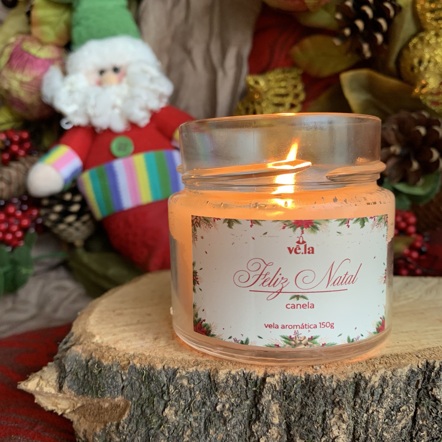 Vela Aromática de Canela (Edição Limitada) - Linha de Natal - 100% artesanal - cera vegetal. Peso líq. 150g queima até 30 horas.