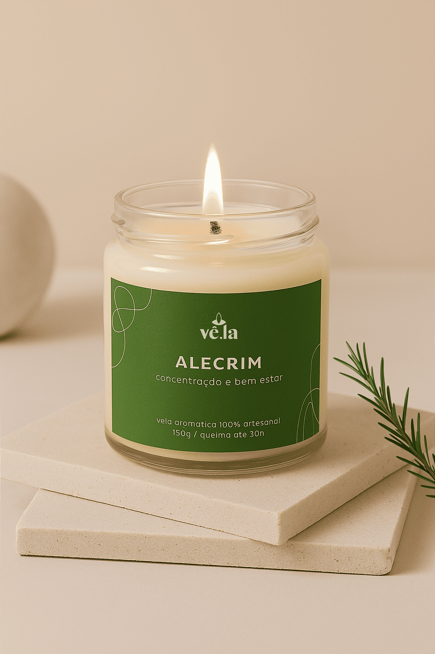 A vela aromática de alecrim faz parte da nossa linha clássica e o seu aroma fresco e agradável proporciona benefícios para o corpo e a mente por auxiliar na concentração trazendo efeitos positivos para memória reduzindo o estresse e a sua função calmante garante bem-estar preservando o bom humor e a alegria no coração.